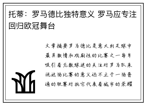 本篇文章将探讨库库雷利亚在比赛中因手球非故意行为而引发的争议,以及这一事件对德国比赛规则所造成的影响。文章将从四个方面进行详细分析:首先,将回顾库库雷利亚事件的基本情况,并解释为何其手球行为被认为是非故意的;其次,分析德国比赛规则的基本框架以及为何这次事件导致规则需要调整;第三,探讨其他足球赛事中类似手球事件的判罚,并与库库雷利亚的情况进行对比;最后,评估此次事件可能对足球规则发展和裁判判罚标准的...